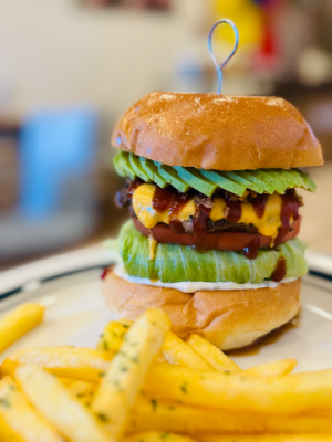 こんな大きいハンバーガーは女友達か、肉体関係のある男性の前でしか食べれないわぁ