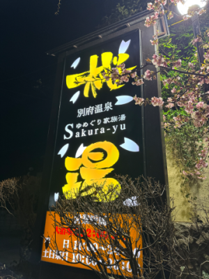 桜湯の入口にも河津桜が咲いてたよ🌸