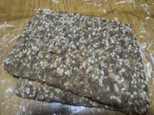 KALDIっで買った、種やらアワやらヒエをギュッと固めた茶色い板とかね