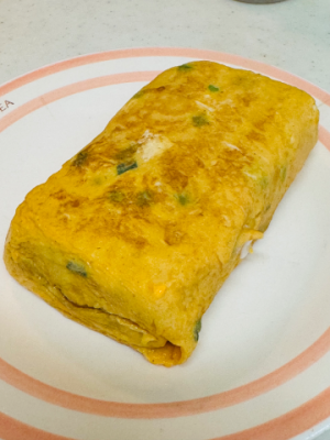 お弁当って言ってもね、ネギ入り玉子焼きとウインナーとおにぎりだよ