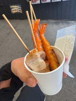雨も上がって、湯の坪街道で食べ歩きしたよー