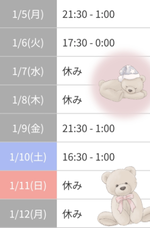 出勤予定です.+:? ヾ(◎´∀`◎)? ?:+.??