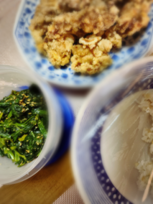 唐揚げ味付けしてたの揚げて