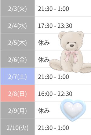 2月月頭結構多めの出勤予定ですヾ(´∀`ヾ)