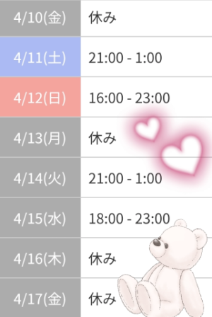 出勤予定ですヾ(*≧∀≦)ノ゙❤❤