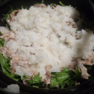 大根おろしを山ほど乗せて