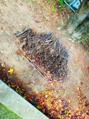 一角に整然と積み重ねられた小枝たちに目を奪われてじー…と凝視